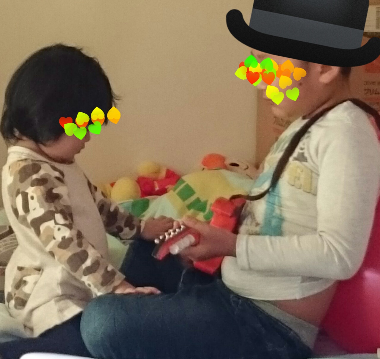 えぇ、電子ピアノはあるんですがね。ニィニの荷物が上に載ってますが。(苦笑)後、おもちゃのピアノ。そして、昔ニィニがサンタに貰ったギター。これが、壊れてしまったんですね…弦が切れて。張り直せないおもちゃでして。以前UPしましたね、この写真。(笑)