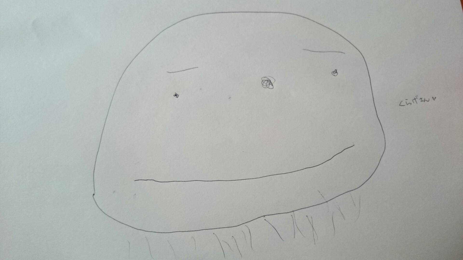で、先日娘が描いた"くらげさん ver.2”を海月さんに見せると、爆笑を戴きました~(笑)