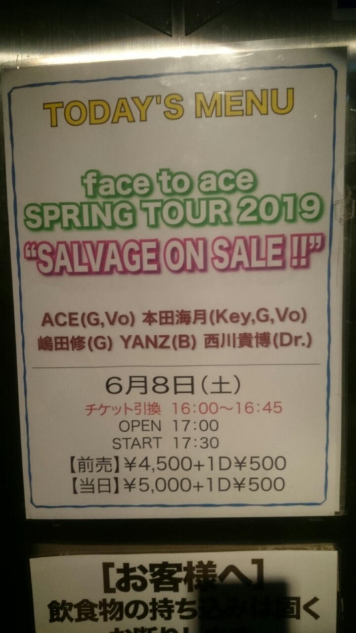 10曲終わった頃のMC中、突然非常ベル(火災報知機だと思われる…)が鳴り出し、一旦止まったものの、「え?何?どうしたの?…誰か目覚ましかけた!?」とエースさん…(笑)